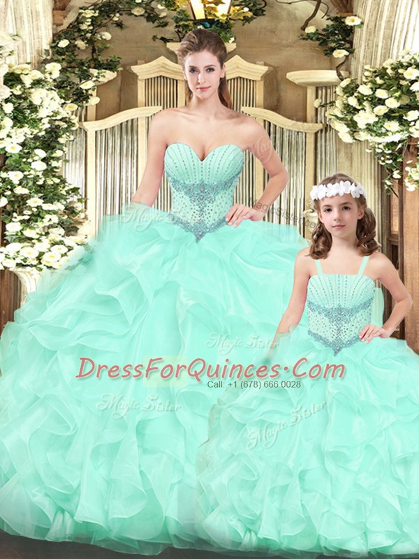 Graceful Floor Length Aqua Blue 15th Birthday Dress Sweetheart Sleeveless Lace Up