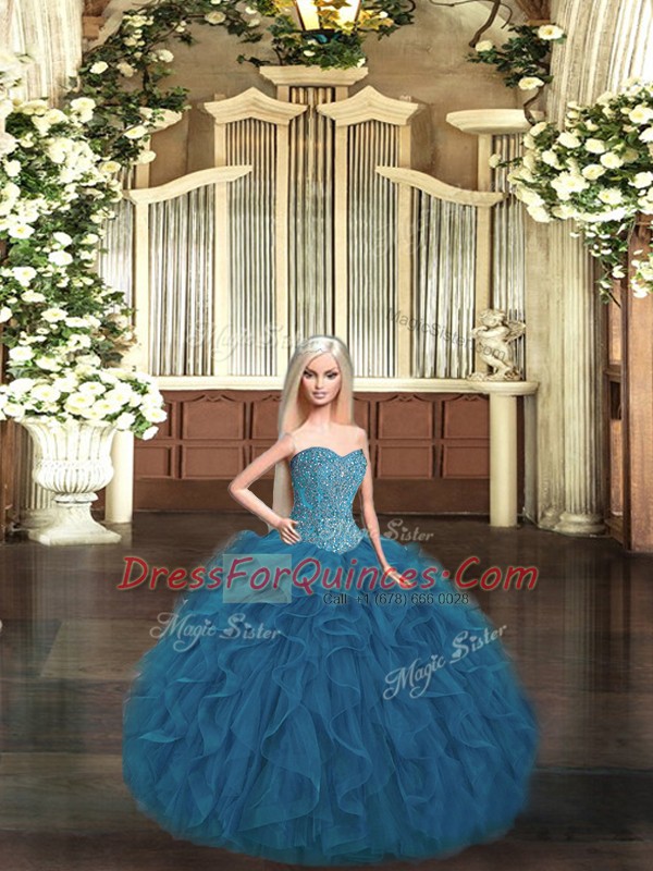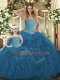 Great Floor Length Ball Gowns Sleeveless Teal Quinceanera Dresses Lace Up