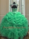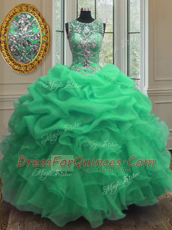 Green Ball Gowns Organza Scoop Sleeveless Beading and Ruffles Floor Length Lace Up Sweet 16 Quinceanera Dress