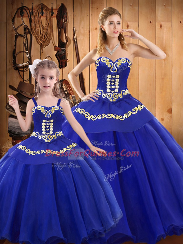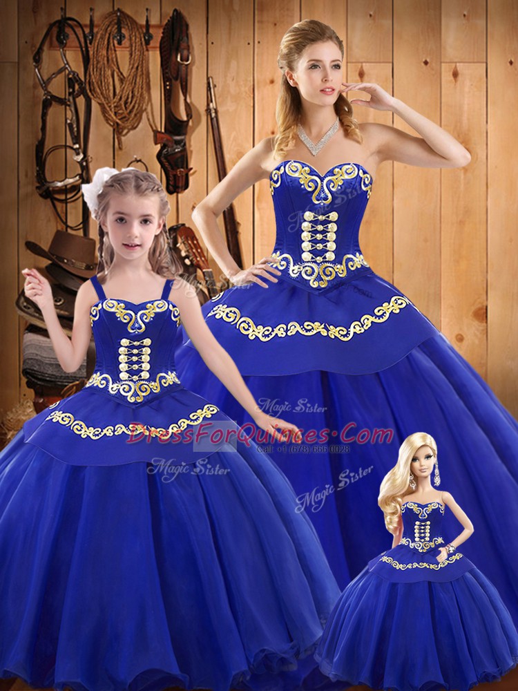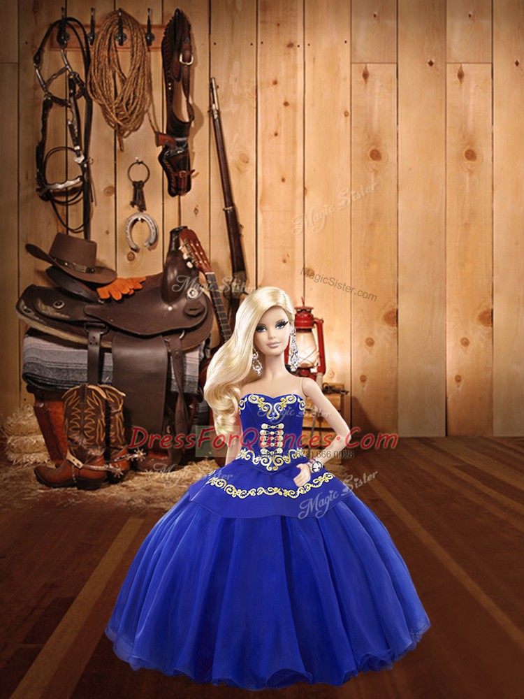 Hot Sale Sleeveless Embroidery Lace Up Ball Gown Prom Dress