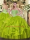 Hot Sale Yellow Green Organza Lace Up Vestidos de Quinceanera Sleeveless Floor Length Ruffles