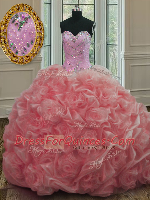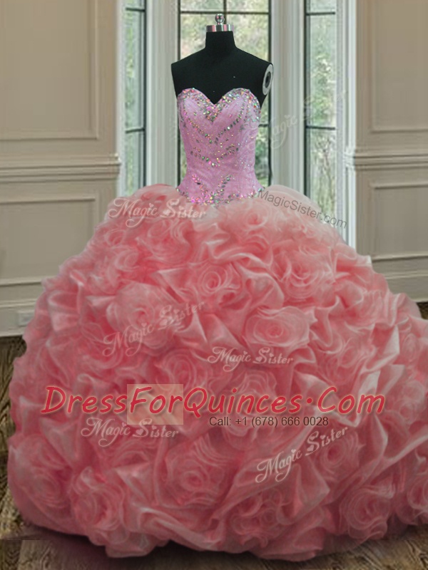 Hot Selling Watermelon Red Ball Gowns Organza Sweetheart Sleeveless Beading Lace Up Quinceanera Gown Sweep Train
