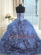 Lace Up Sweet 16 Dresses Blue for Military Ball and Sweet 16 and Quinceanera with Beading and Ruffles Brush Train