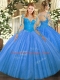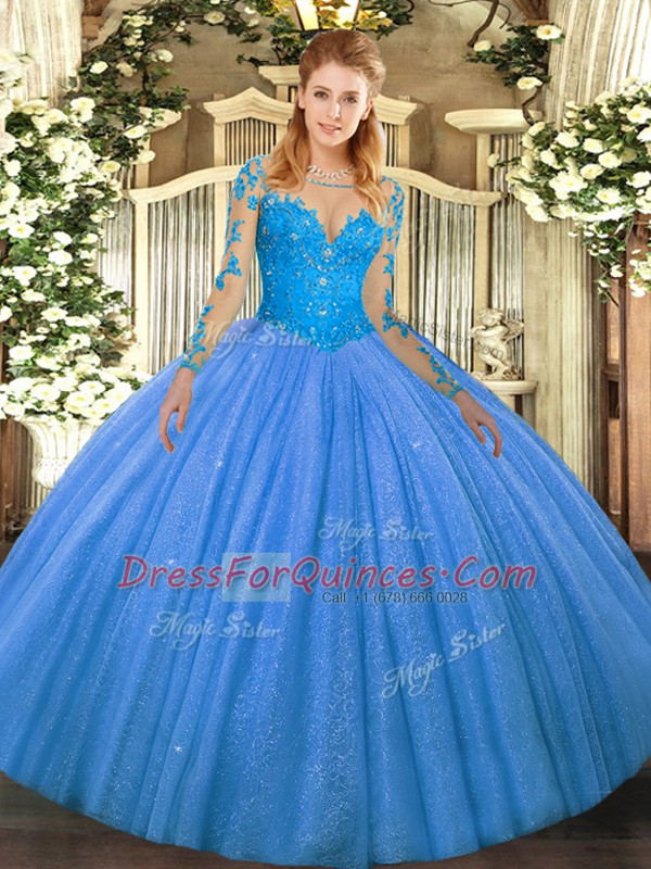 Latest Floor Length Baby Blue Quince Ball Gowns Tulle Long Sleeves Lace