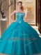 Latest Sweetheart Sleeveless Lace Up Sweet 16 Quinceanera Dress Teal Tulle