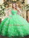 Lovely Apple Green Organza Zipper Vestidos de Quinceanera Sleeveless Floor Length Ruffled Layers