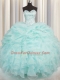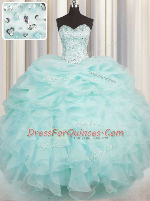 Luxury Aqua Blue Lace Up Sweetheart Beading and Ruffles Quince Ball Gowns Organza Sleeveless