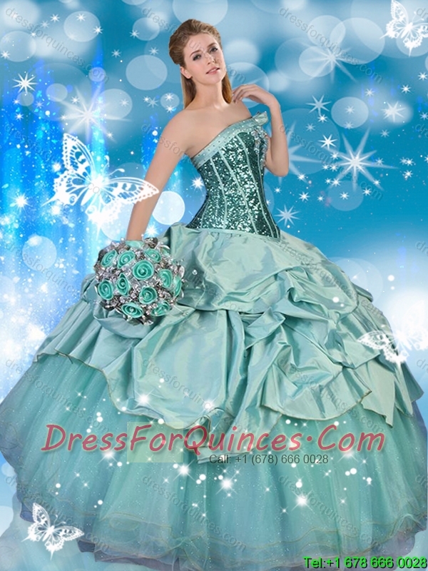 Modest Strapless Quinceanera Dresses with Sequins and Pick Ups