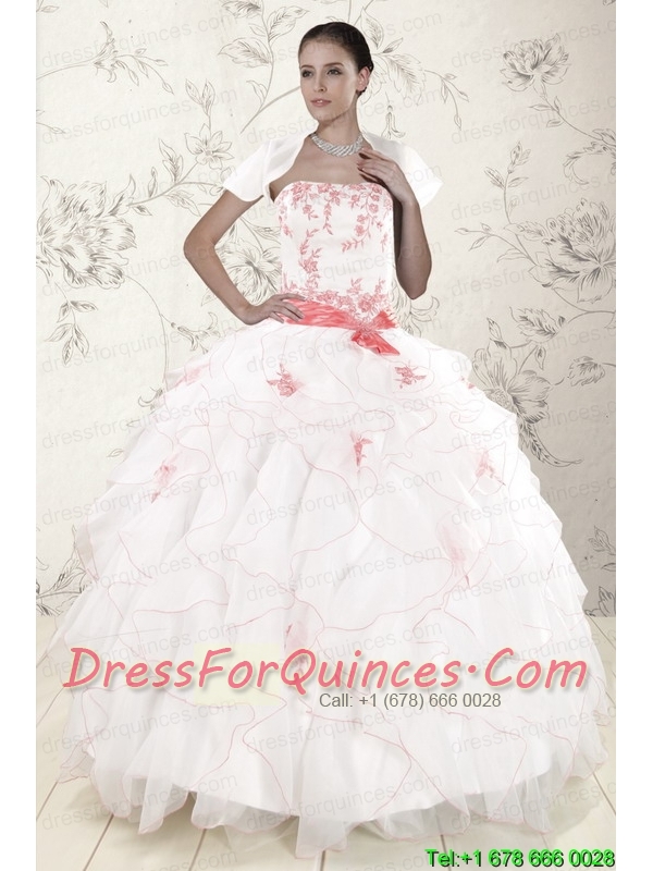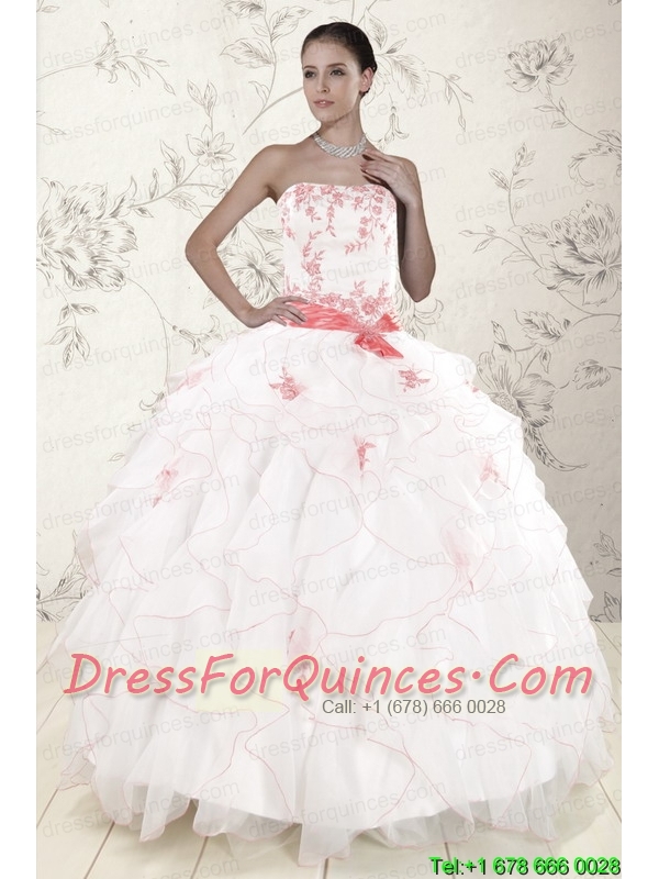 Most Popular White Quinceanera Dresses with Pink Appliques and Ruffles