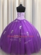 Nice Purple Sleeveless Tulle Lace Up Vestidos de Quinceanera for Military Ball and Sweet 16 and Quinceanera