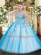 On Sale Tulle Sleeveless Floor Length Ball Gown Prom Dress and Appliques