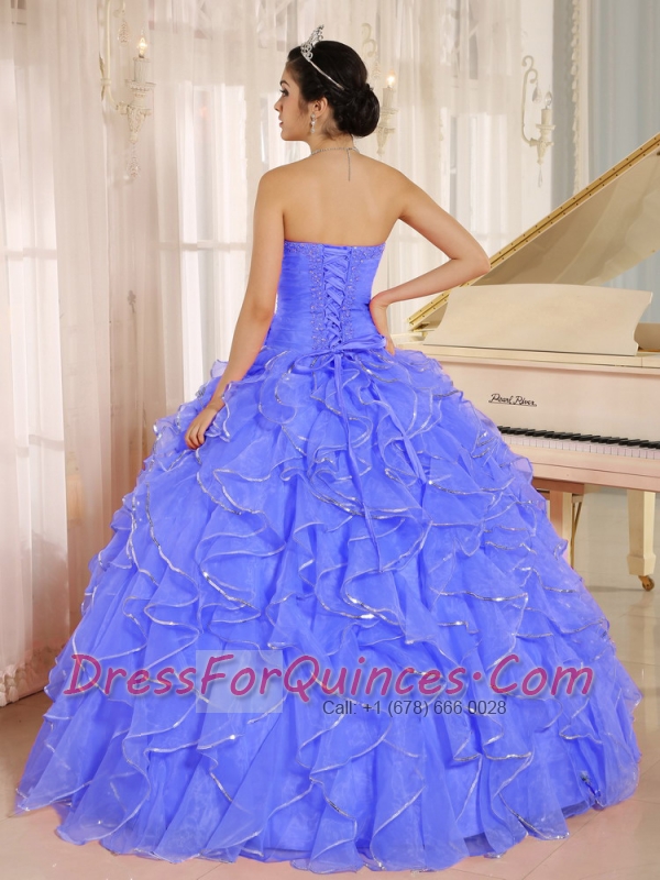 Perfect 2013 Ruffles and Beaded For Blue Quinceanera Dress Custom Made