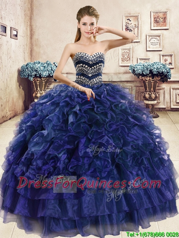 Perfect Big Puffy Navy Blue Quinceanera Dress with Beading and Ruffles
