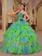 Perfect Clorful Ball Gown Sweetheart Ruffles Organza Quinceanera Dress