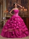 Perfect Fuchsia Ball Gown Strapless Floor-length Appliques Taffeta Quinceanera Dress