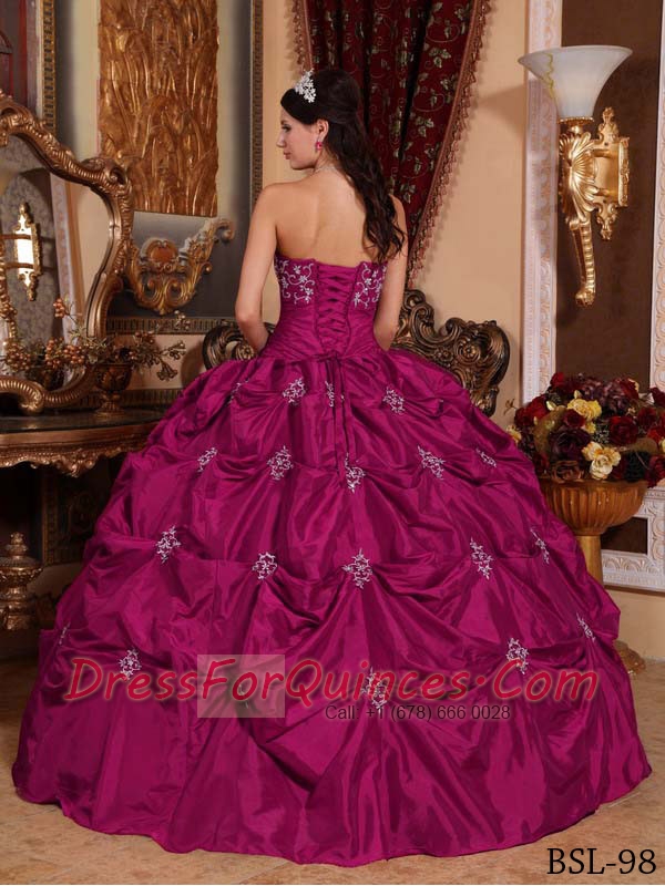 Perfect Fuchsia Ball Gown Strapless Floor-length Taffeta Appliques Quinceanera Dress