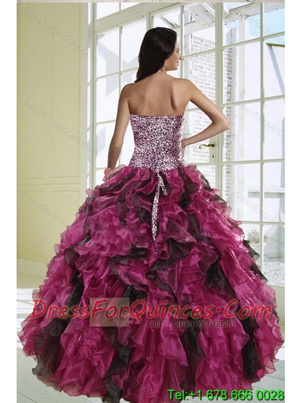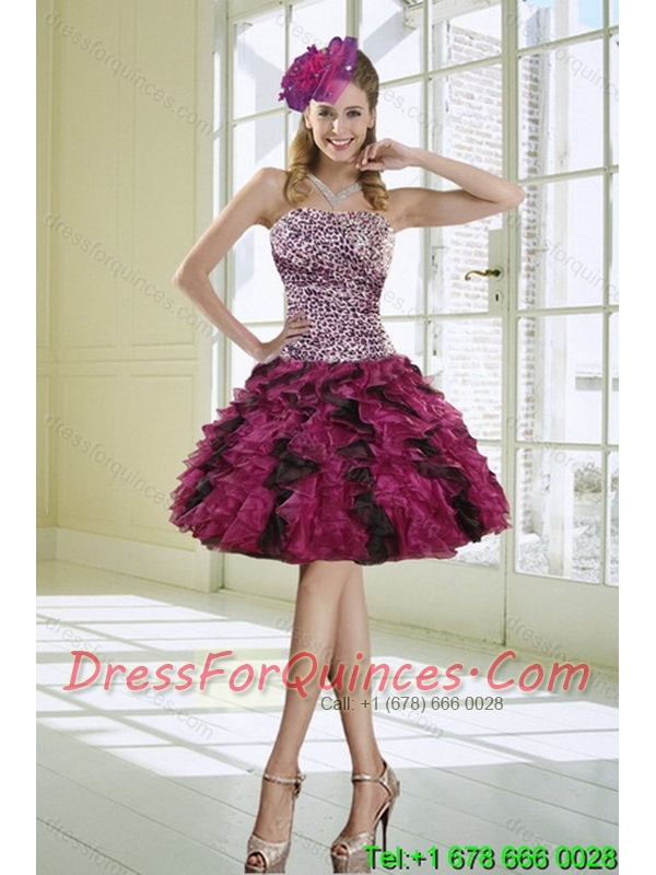 Perfect Multi Color Strapless Dress for Quince with Leopard Print