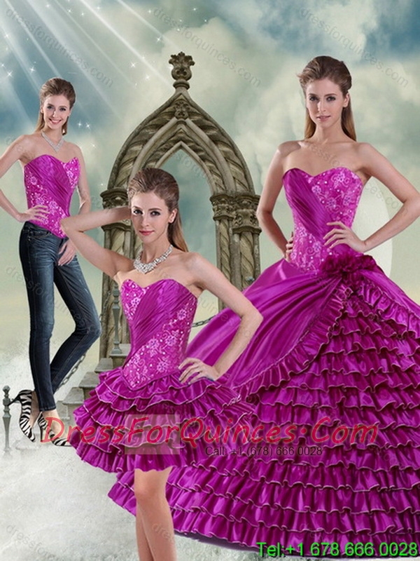 Perfect Sweetheart Beading and Ruffled Layers Quinceanera Dresses in Fuchsia