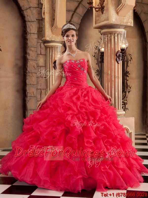 Perfect Sweetheart Ruffles Quinceanera Dresses in Red