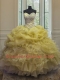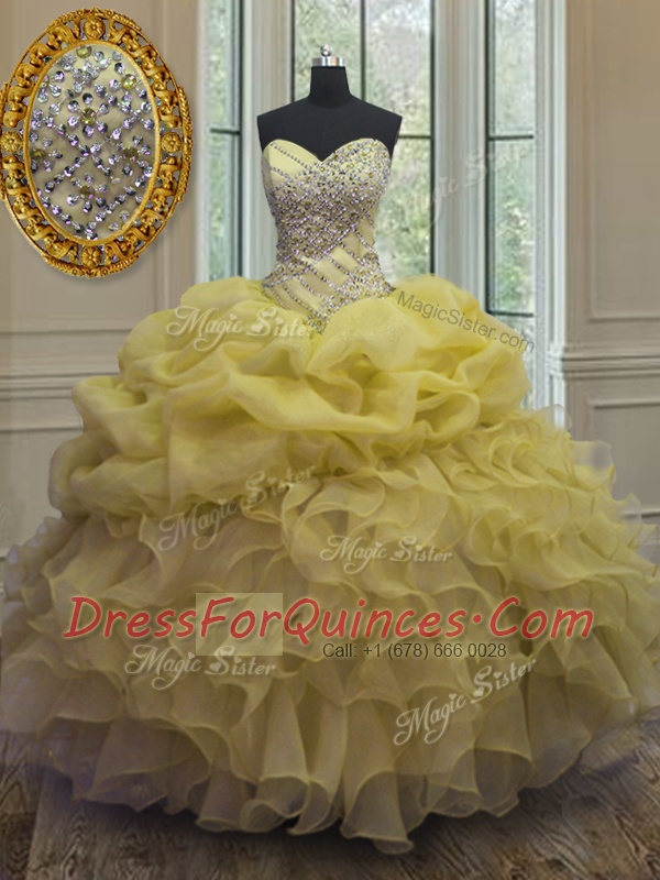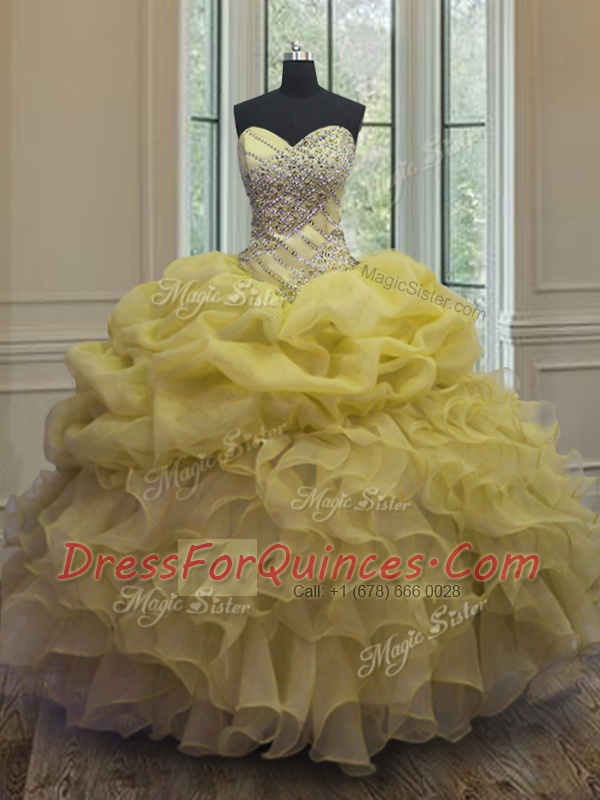 Pick Ups Floor Length Ball Gowns Sleeveless Yellow Sweet 16 Dresses Lace Up