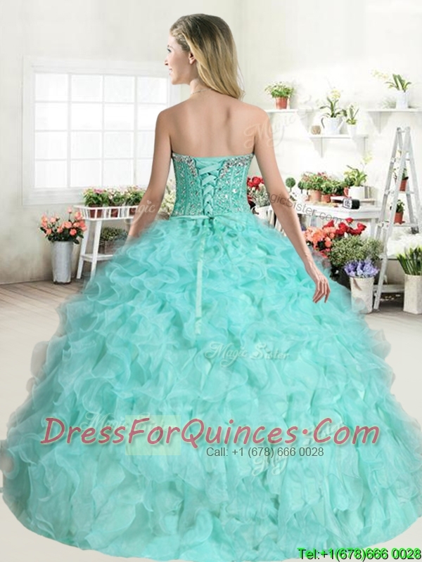 Popular Beaded and Ruffled Baby Blue Quinceanera Dress in Organza