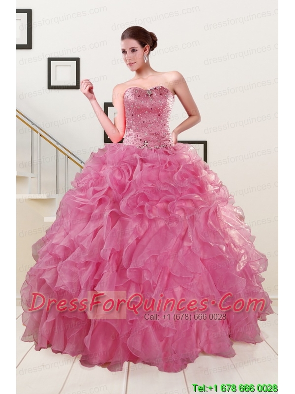Puffy Sweetheart Pink Quinceanera Dresses with Beading