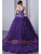 Purple A-Line Sweetheart Brush Train Organza Beading and Ruffles Quinceanea Dress