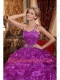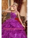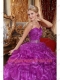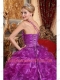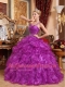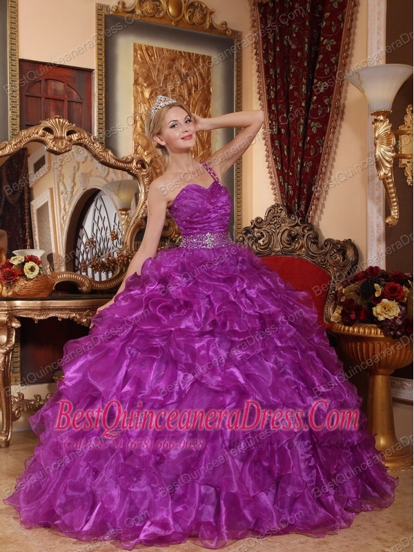 Purple Ball Gown One Shoulder Floor-length Organza Beading Quinceanera Dress