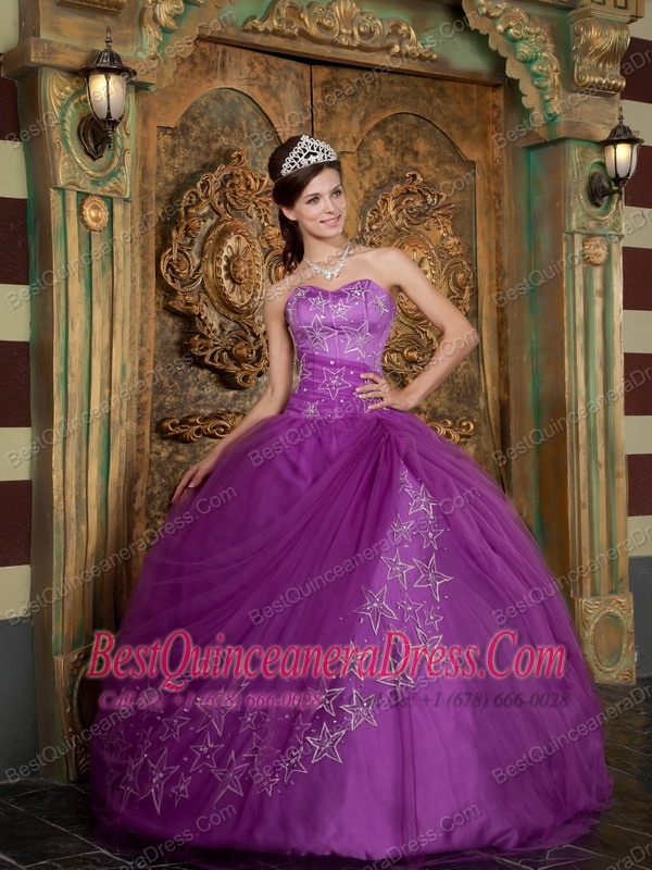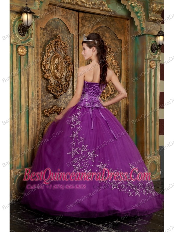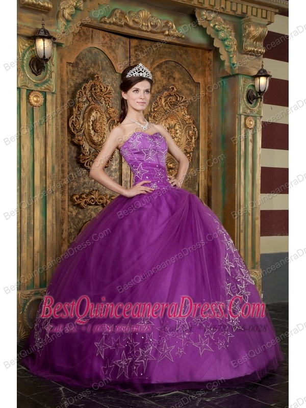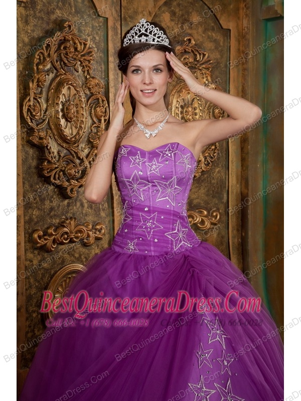 Purple Ball Gown Sweetheart Floor-length Appliques Tulle Quinceanera Dress