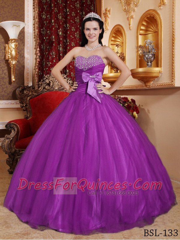 Purple Ball Gown Sweetheart Quinceanera Dress with Tulle and Tafftea Beading