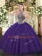 Purple Ball Gowns Beading Sweet 16 Quinceanera Dress Lace Up Tulle Sleeveless Floor Length