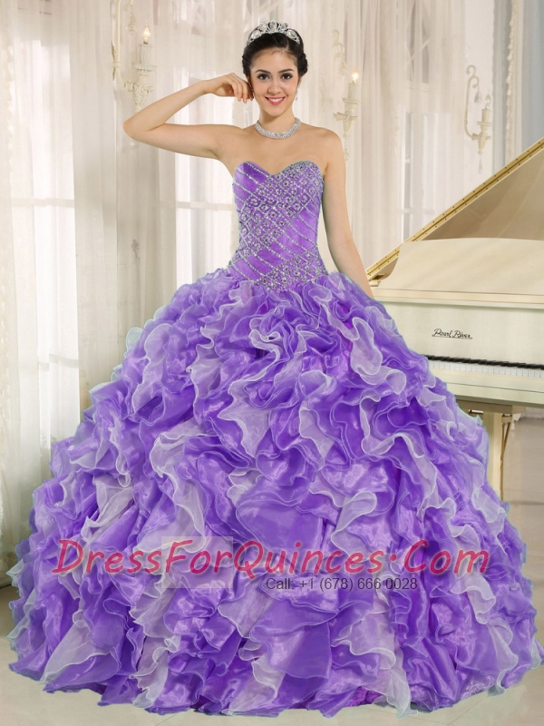 Purple Beaded Bodice and Ruffles Custom Made For 2013 Quinceanera Dress
