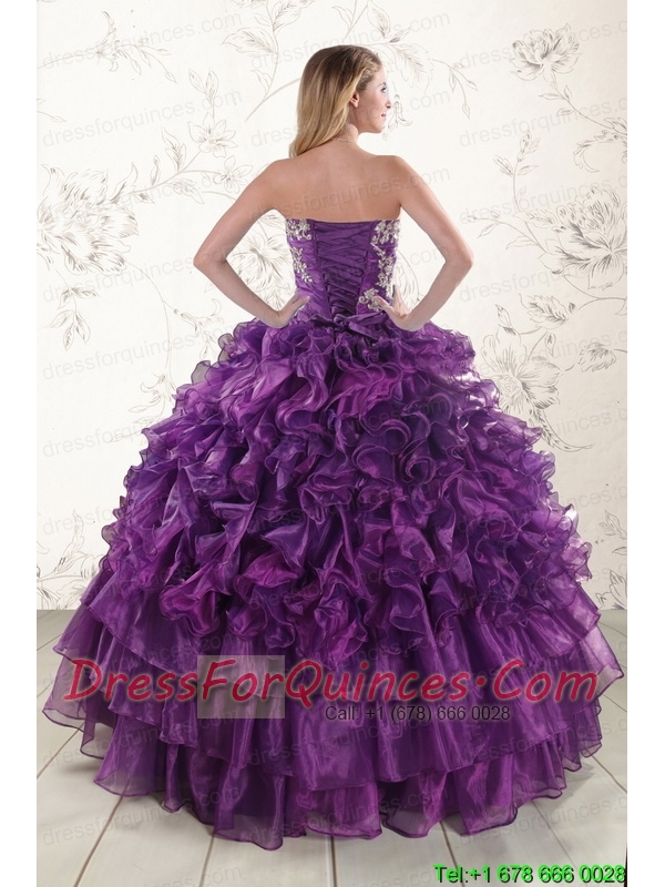 Purple Strapless 2015 Quinceanera Dress with Appliques