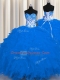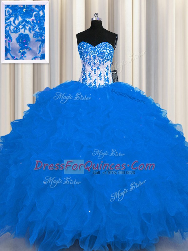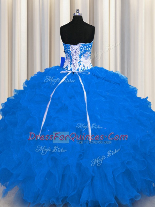 Royal Blue Ball Gowns Appliques and Ruffles Vestidos de Quinceanera Lace Up Organza Sleeveless Floor Length