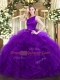 Sexy Purple Sleeveless Organza Clasp Handle Quinceanera Dress for Military Ball and Sweet 16 and Quinceanera