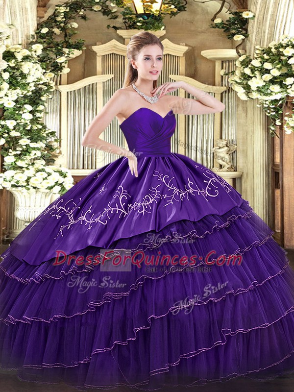 Simple Purple Organza and Taffeta Zipper Sweet 16 Quinceanera Dress Sleeveless Floor Length Embroidery and Ruffled Layers
