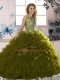 Sleeveless Beading and Ruffles Lace Up 15th Birthday Dress