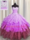 Sleeveless Organza Floor Length Lace Up Sweet 16 Quinceanera Dress in Multi-color with Beading and Ruffles and Ruffled Layers and Pick Ups