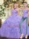 Smart Lavender Two Pieces Appliques and Ruffles Quinceanera Gowns Zipper Organza Sleeveless Floor Length