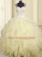 Smart Light Yellow Ball Gowns Organza Straps Sleeveless Beading and Ruffles Floor Length Lace Up Vestidos de Quinceanera