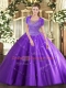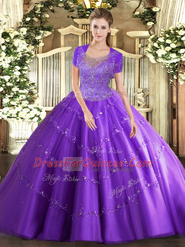 Stylish Lavender Ball Gowns Scoop Sleeveless Tulle Floor Length Clasp Handle Beading and Appliques Sweet 16 Dresses