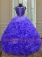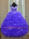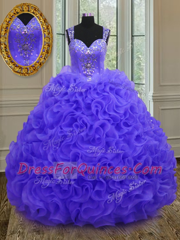Stylish Straps Purple Ball Gowns Beading and Ruffles Ball Gown Prom Dress Zipper Organza Sleeveless Floor Length