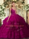 Sweet Sleeveless Floor Length Ruching Backless Quince Ball Gowns with Fuchsia