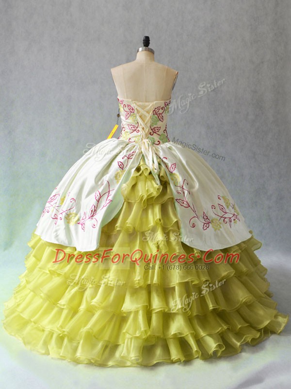 Sweet Sweetheart Sleeveless Lace Up 15 Quinceanera Dress Yellow Green Organza