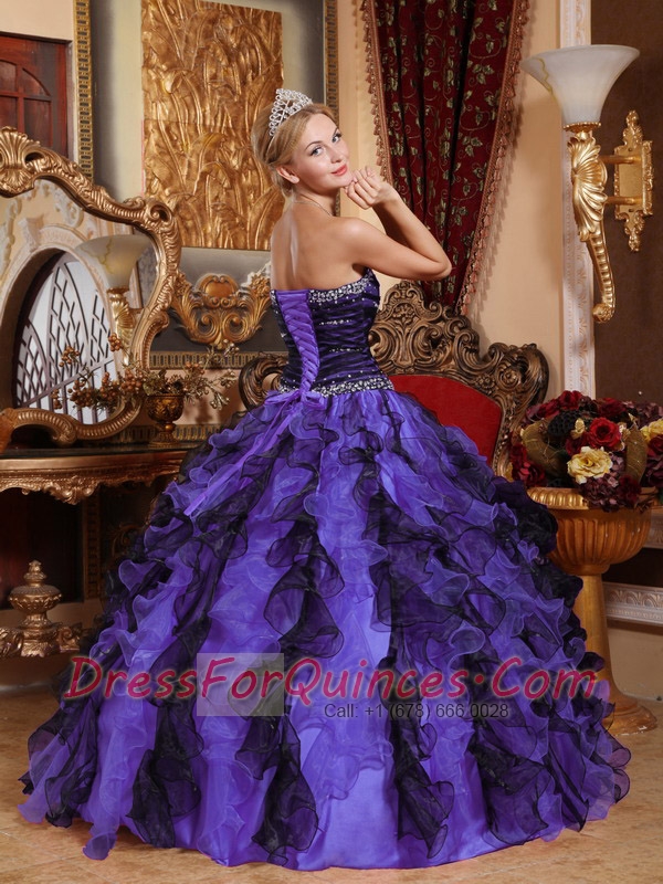 Sweetheart Beading and Ruffles Quinceanera Dress in Purple and Black