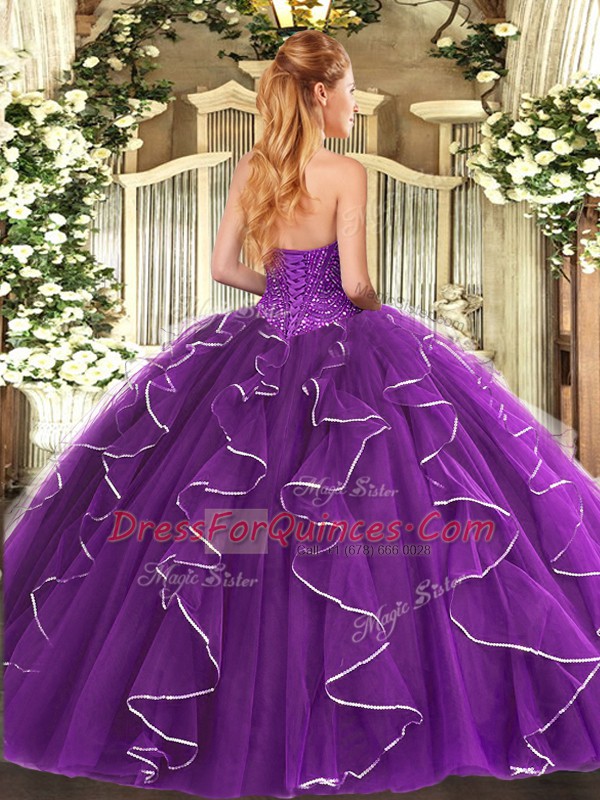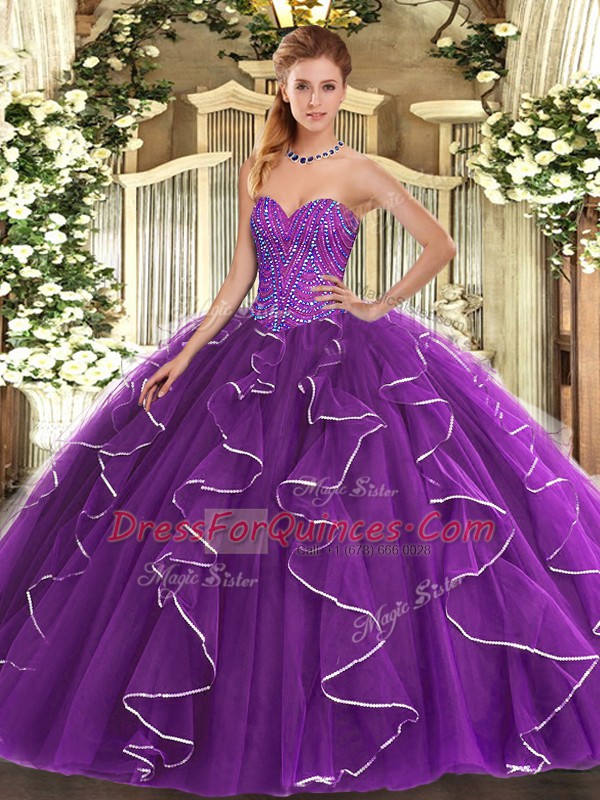 Sweetheart Sleeveless Lace Up Sweet 16 Dresses Purple Tulle
