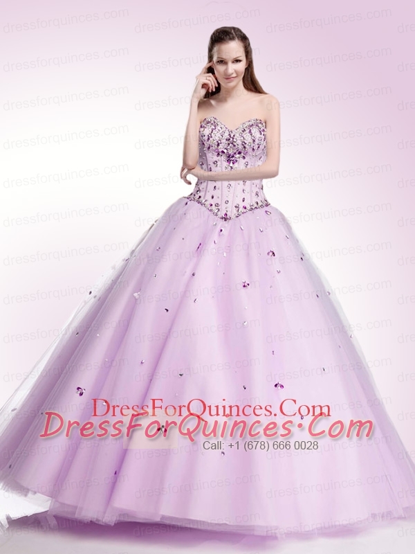 Sweetheart Tulle Beaded Decorate Quinceanera Dress in Lilac