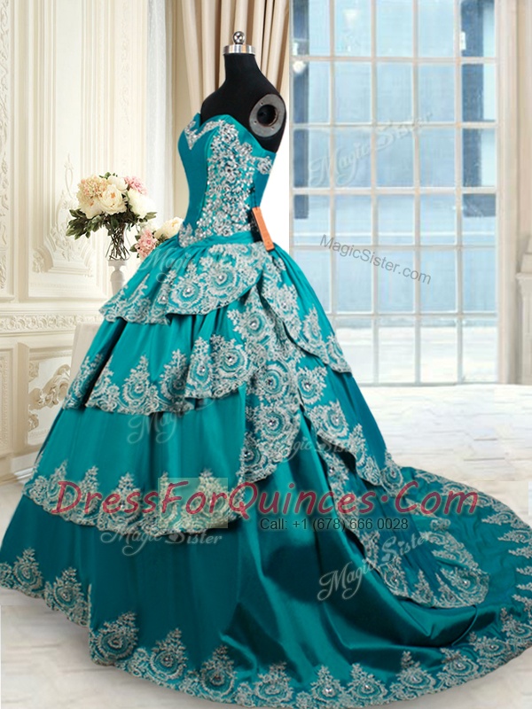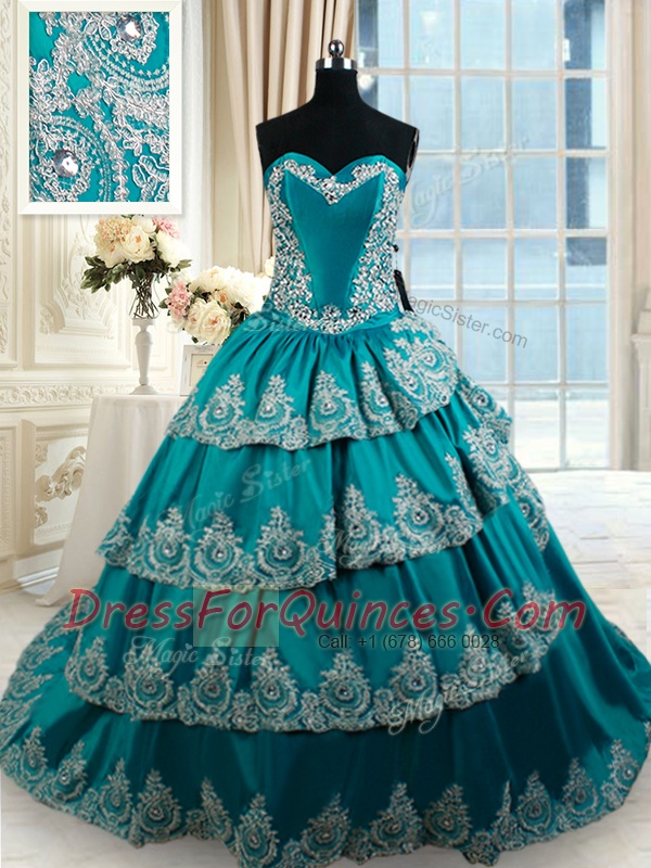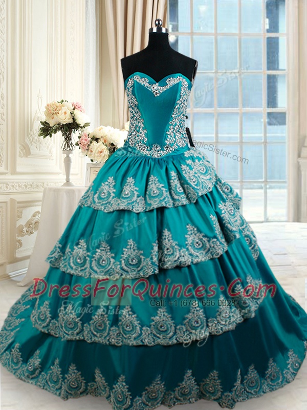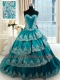 Teal Lace Up Sweetheart Beading and Embroidery and Ruffled Layers Quince Ball Gowns Taffeta Sleeveless