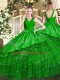 Top Selling Green V-neck Zipper Embroidery and Ruffled Layers Sweet 16 Quinceanera Dress Sleeveless
