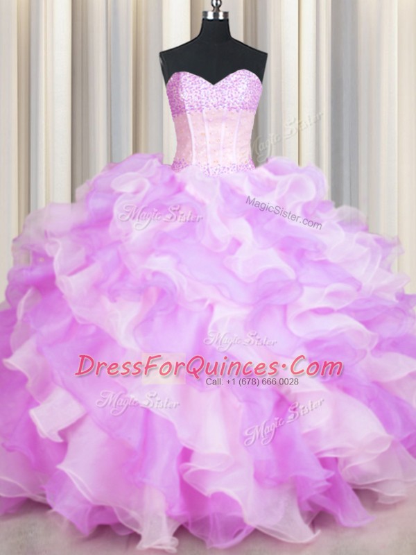 Visible Boning Two Tone Multi-color Ball Gowns Sweetheart Sleeveless Organza Floor Length Lace Up Beading and Ruffles 15 Quinceanera Dress